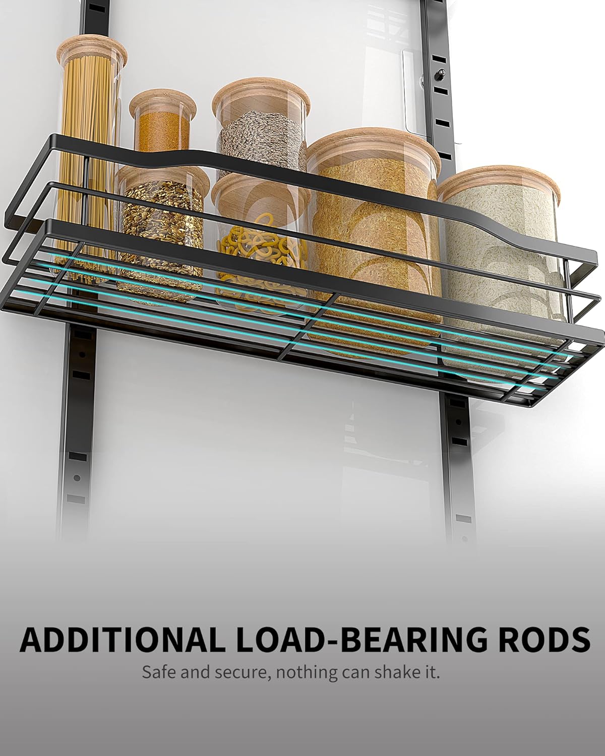 This versatile organizer can be easily hung over any standard-sized door, making it ideal for use in the kitchen, bedroom, bathroom, or any other room in your home. The durable construction ensures that this pantry organizer will last for years to come, while the sleek black finish adds a touch of style to any space.